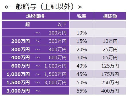「一般贈与」の贈与税率は以下の通りです。